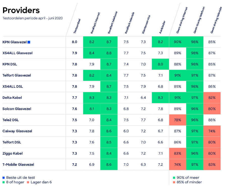- In Nederland staan de providers KPN, XS4ALl, Delta en Solcon bekend als betrouwbaar (Consumentenbond, 2025)